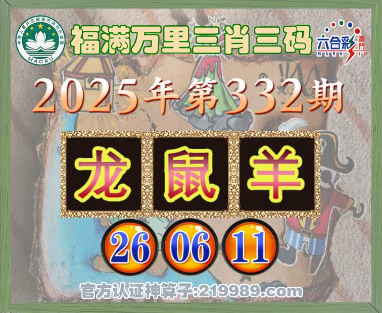 332期:〖福满万里〗  ♣️三肖三码 ♣️【鼠羊】【26.06.11】开:龙26