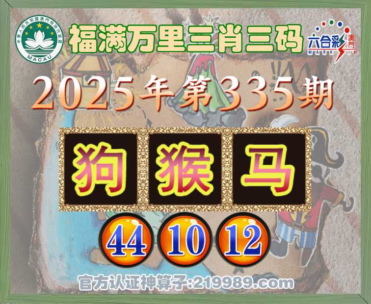 335期:〖福满万里〗  ♣️三肖三码 ♣️【猴马】【44.10.12】开:狗44