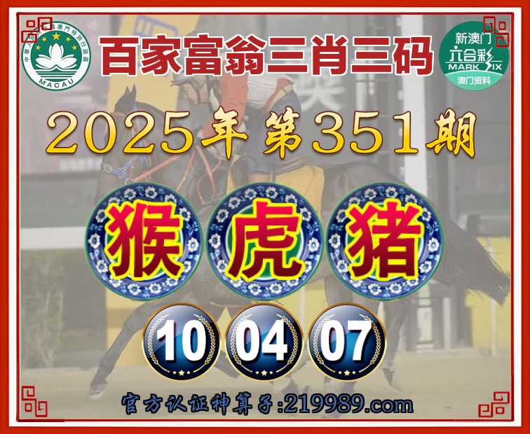 351期: 🍧『百家富翁』 🍧三肖三码🍧【猴猪】【10.04.07】开:虎04