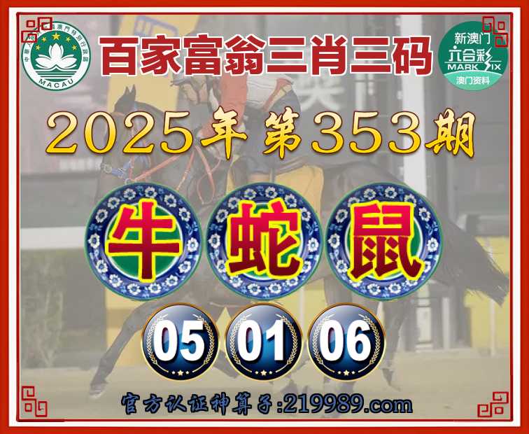 353期: 🍧『百家富翁』 🍧三肖三码🍧【牛鼠】【05.01.06】开:蛇01