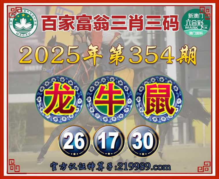 354期: 🍧『百家富翁』 🍧三肖三码🍧【龙牛】【26.17.30】开:鼠30