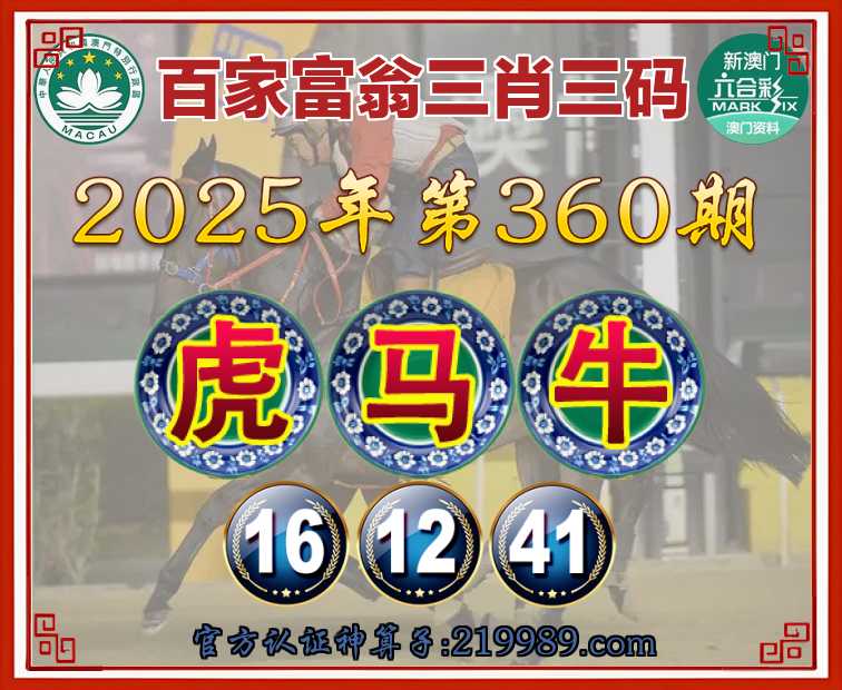 360期: 🍧『百家富翁』 🍧三肖三码🍧【虎马】【16.12.41】开:牛41