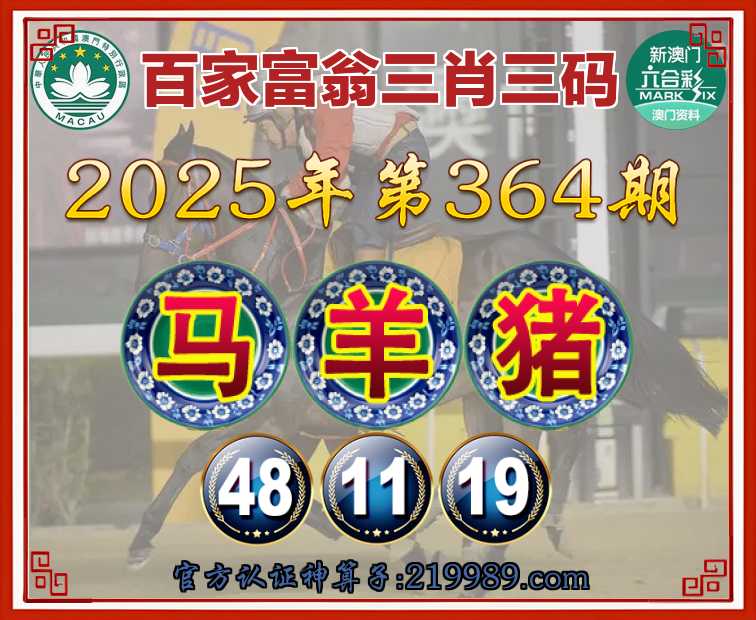 364期: 🍧『百家富翁』 🍧三肖三码🍧【羊猪】【48.11.19】开:马12