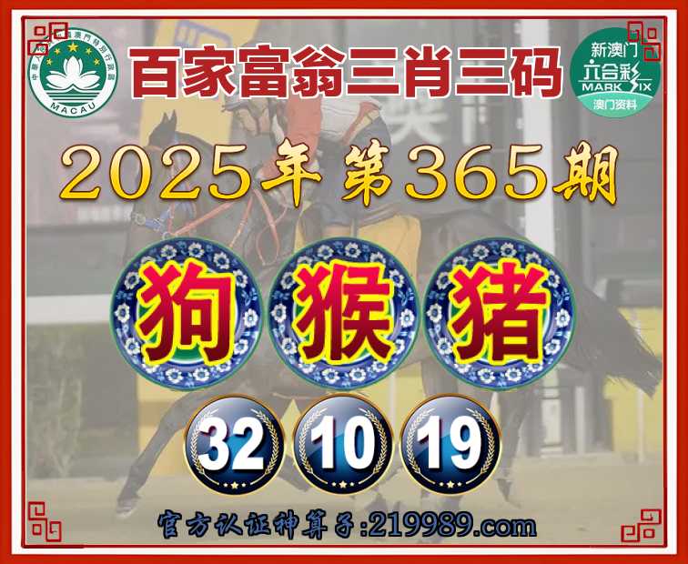 365期: 🍧『百家富翁』 🍧三肖三码🍧【狗猴猪】【32.10.19】开:龙26