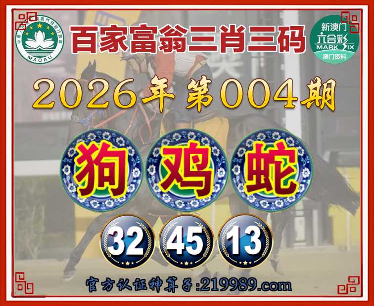 004期: 🍧『百家富翁』 🍧三肖三码🍧【狗蛇】【32.45.13】开:鸡45