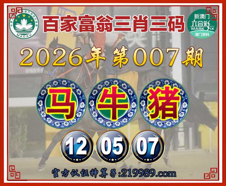 007期: 🍧『百家富翁』 🍧三肖三码🍧【马猪】【12.05.07】开:牛41