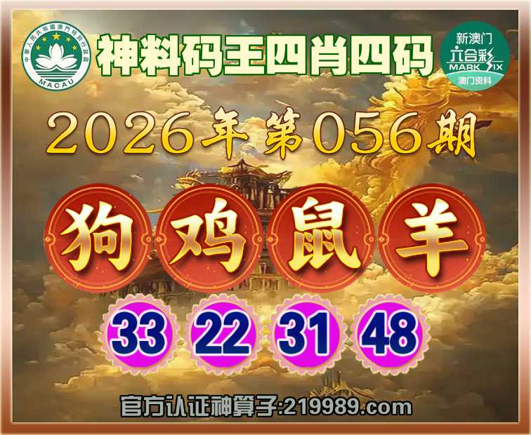 056期:『神料码王』 🥧四肖四码🥧【狗鸡鼠】【33.22.31.48】开:羊48