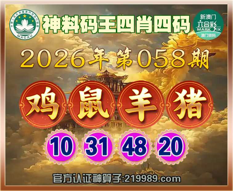 058期:『神料码王』 🥧四肖四码🥧【鸡羊猪】【10.31.48.20】开:鼠31