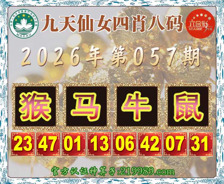 057期:【九天仙女】 🎀四肖八码🎀【马牛鼠】开:猴23