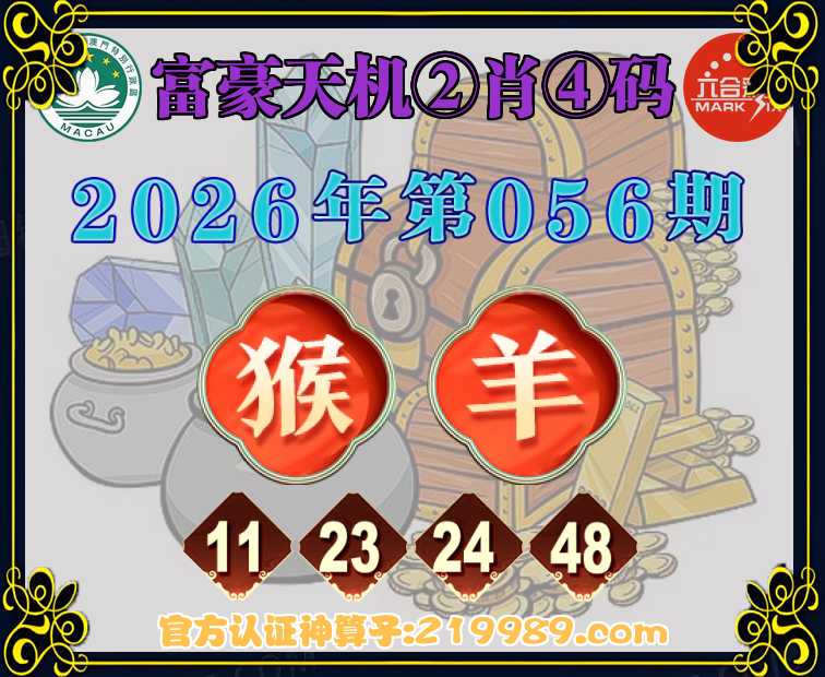 056期: 🍀『富豪天机』 🍀②肖④码🍀【猴】【11.23.24.48】开:羊48