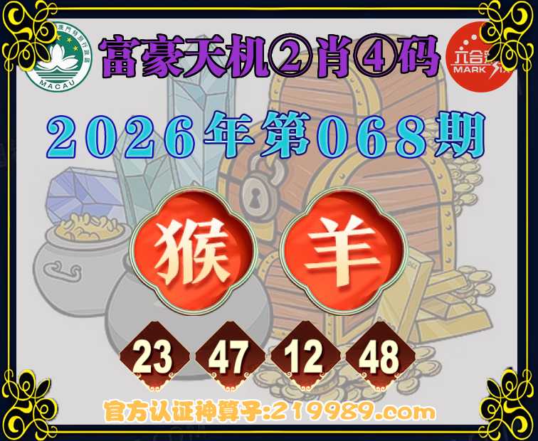 068期: 🍀『富豪天机』 🍀②肖④码🍀【羊】【23.47.12.48】开:猴23