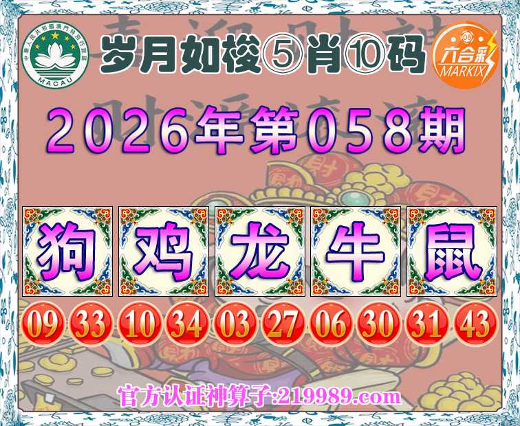 058期:《岁月如梭》 ☘️⑤肖⑩码☘️【狗鸡龙牛】开:鼠31