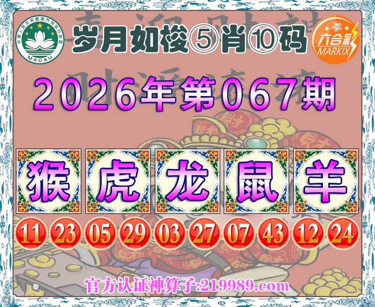 067期:《岁月如梭》 ☘️⑤肖⑩码☘️【猴龙鼠羊】开:虎05