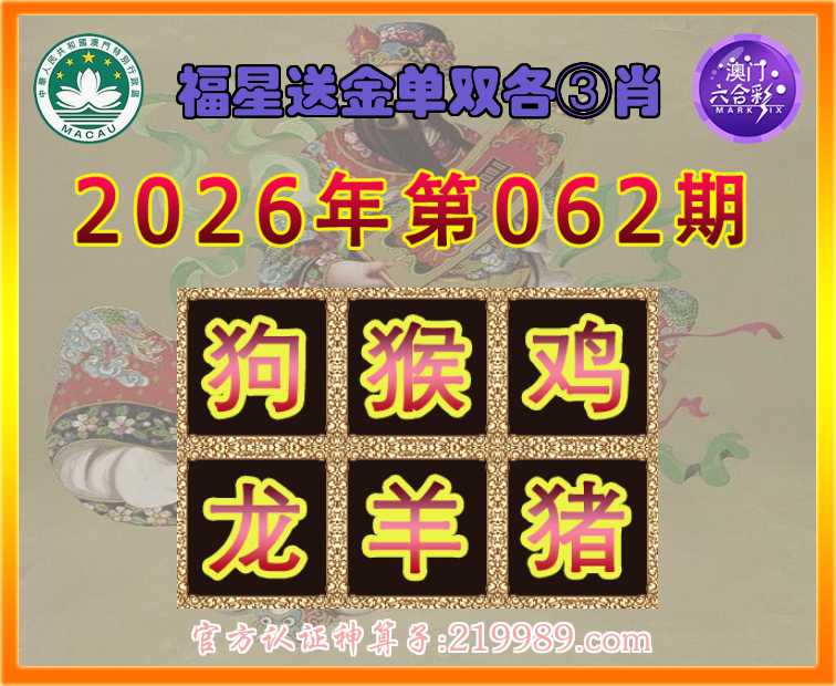 062期:『福星送金』 ♠️单双各③肖♠️【狗.猴.鸡.龙..猪】开:羊24