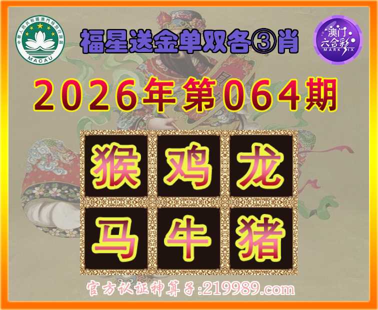 064期:『福星送金』 ♠️单双各③肖♠️【猴.鸡.龙.马..猪】开:牛18