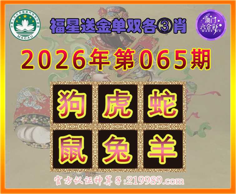 065期:『福星送金』 ♠️单双各③肖♠️【狗..蛇.鼠.兔.羊】开:虎05