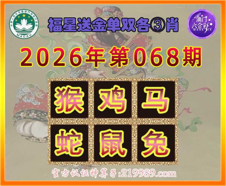 068期:『福星送金』 ♠️单双各③肖♠️【.鸡.马.蛇.鼠.兔】开:猴23