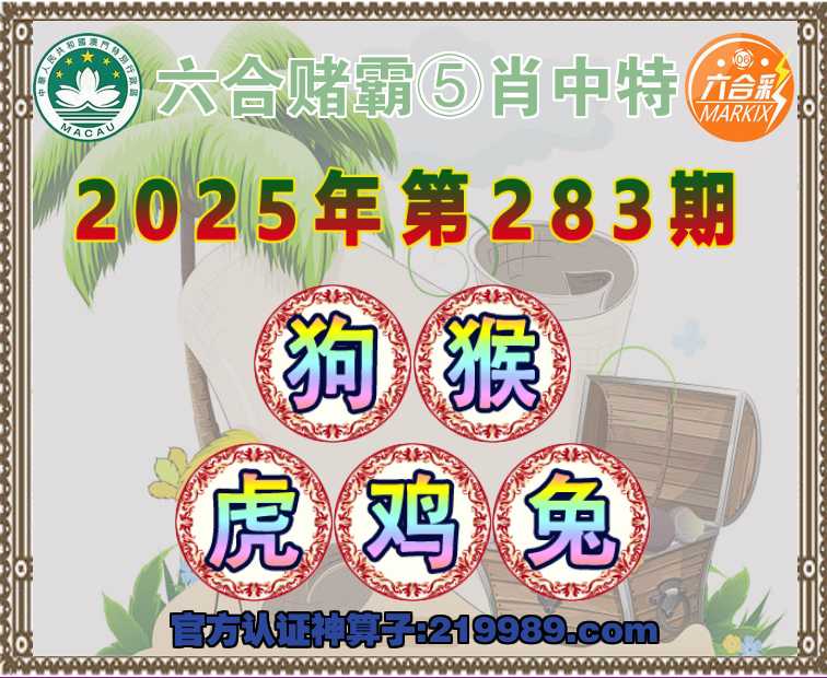 283期: ☝️『六合赌霸』 ☝️⑤肖中特☝️【狗.猴.虎..兔】开:鸡45