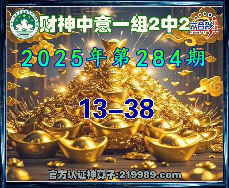 284期:《财神中意》 😜一组2中2😜【13-38