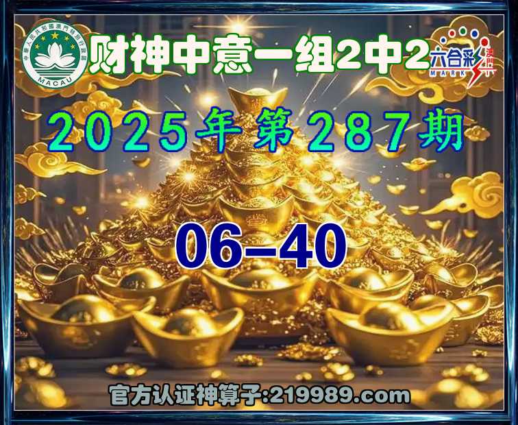 287期:《财神中意》 😜一组2中2😜【06-40】