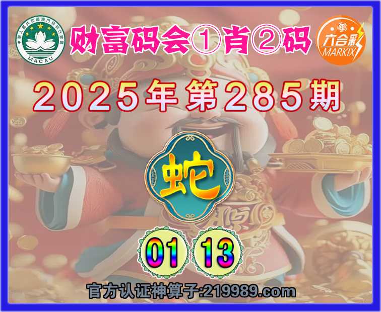 285期:《财富码会》 ☝️①肖②码☝️【蛇】【01.13】开:马24