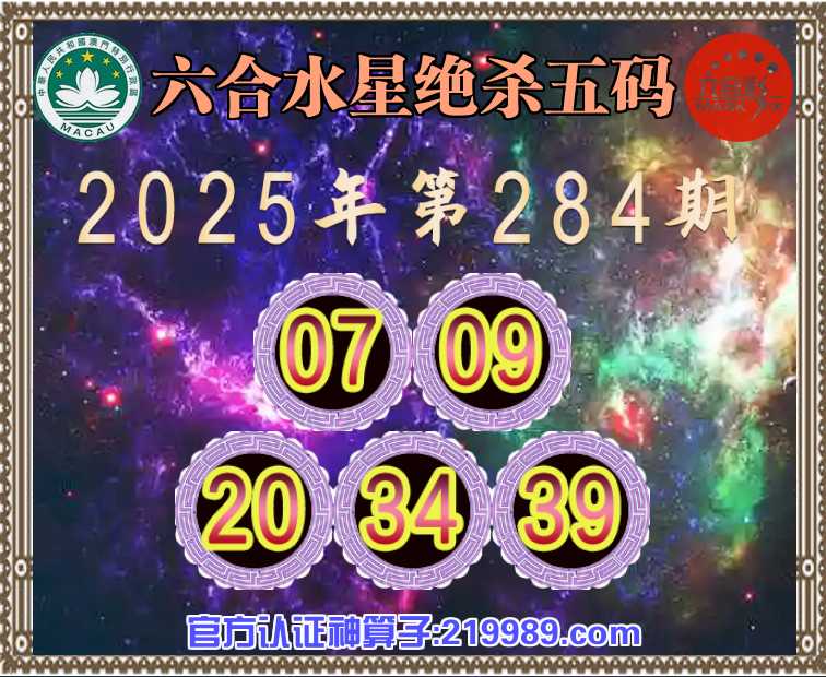 284期: 六合水星 🧶绝杀五码🧶【07.09.20.34.39】开:牛41