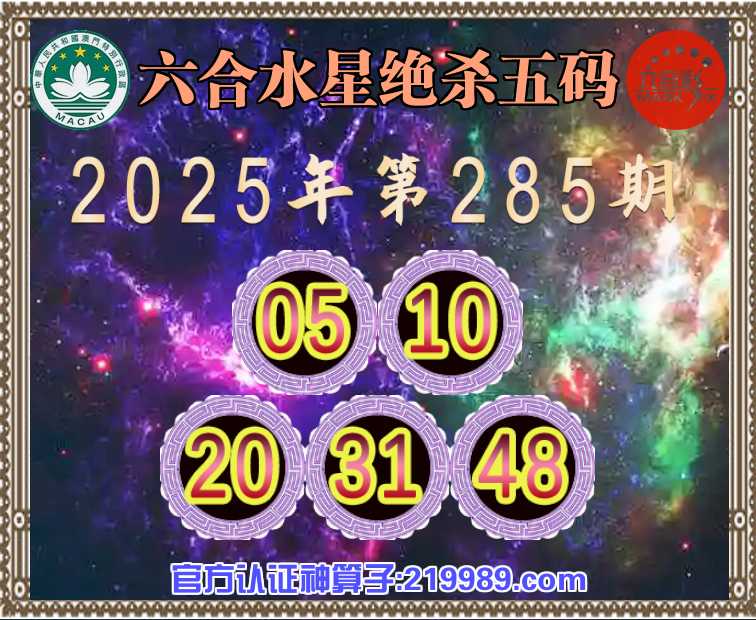 285期: 六合水星 🧶绝杀五码🧶【05.10.20.31.48】开:马24