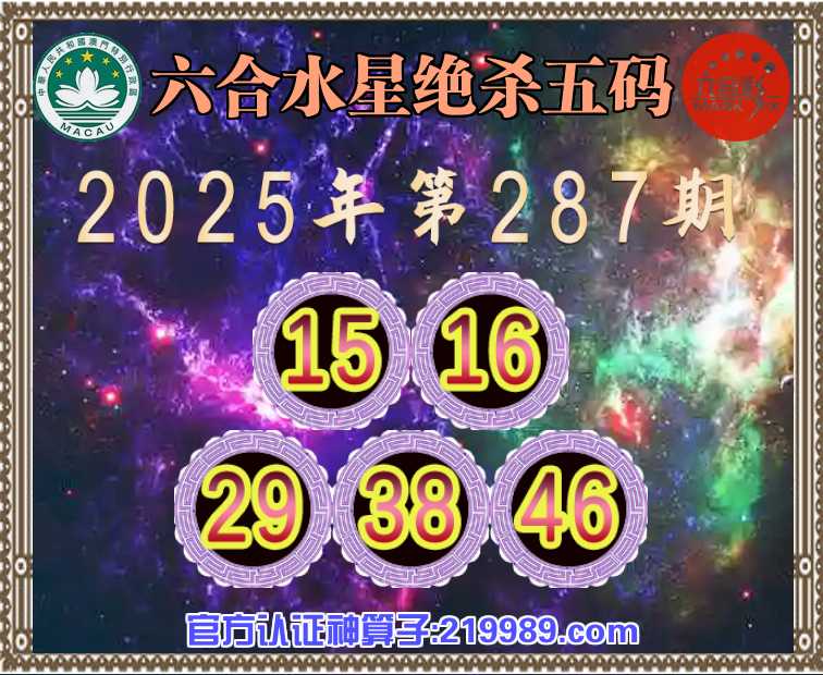 287期: 六合水星 🧶绝杀五码🧶【15.16.29.38.46】开:猴34