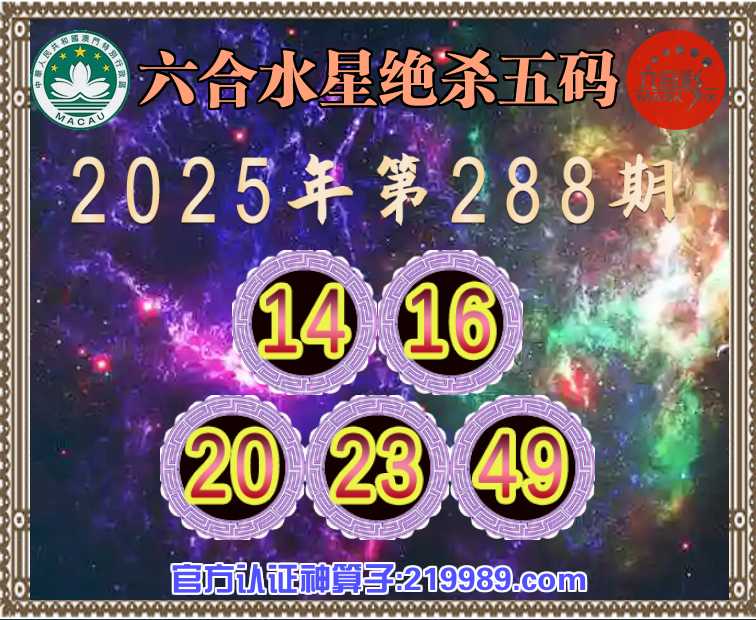 288期: 六合水星 🧶绝杀五码🧶【14.16.20.23.49】开:00准