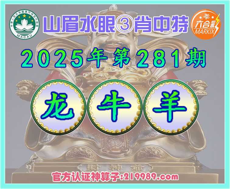 281期:『山眉水眼』 🧩③肖中特🧩【龙.牛.】开:羊47
