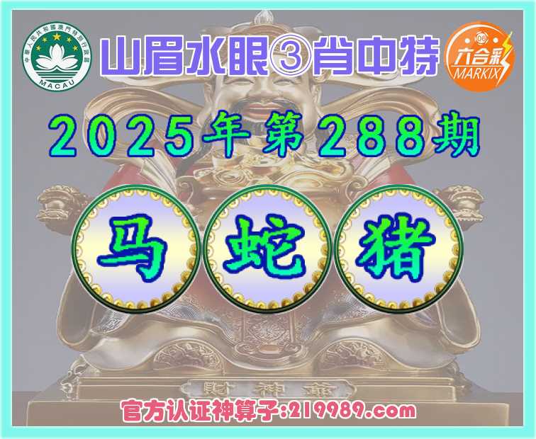 288期:『山眉水眼』 🧩③肖中特🧩【马.蛇.猪】开:00准